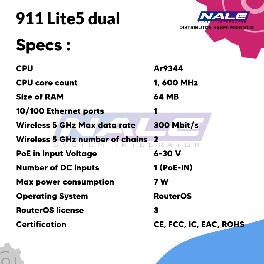 RB911-5HnD adalah router nirkabel RouterBOARD tipe CPE kecil dengan kartu nirkabel Rantai Ganda 5Ghz terintegrasi. Ini dilengkapi dengan CPU 600MHz yang kuat, memberikan nilai uang yang luar biasa.